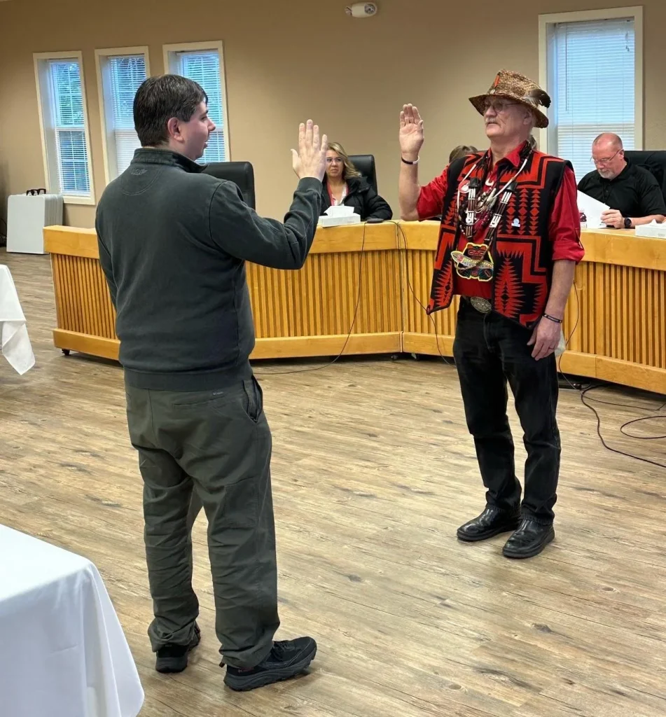 Brad Kneaper, Chair of the Tribal Council stated: “After a difficult time in which we lost our Chief, who walked on in early November, a Special Election was held to fill the position of Chief. Tribal Council Vice-Chair Doug Barrett was elected and assumed the position as of the certification of the election results. Chief Barrett was sworn in at a special Council Meeting on February 12, 2024, by the Election Board Chairman Michael Brainard.”